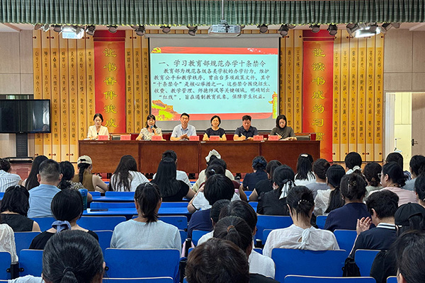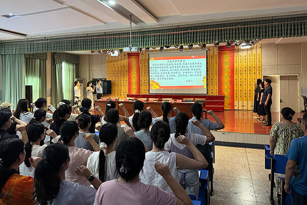 为进一步加强教师队伍建设,筑牢师德师风根基,引导全体教师以饱满的热情、高尚的情操投入教育教学工作,8月29日下午,源汇区受降路小学全体教职工齐聚学校会议室,举行了以“守正初心树新风 行稳致远立师德”为主题的师德专题教育活动。 活动伊始,党支部副书记陈会丽带领全体教师深入学习《教育部规范办学十条禁令》《新时代中小学教师职业行为十项准则》《严禁中小学校和中小学教师有偿补课的规定》《漯河市义务教育学校减轻学生负担“十不准”》等文件。陈会丽强调,全体教师严禁组织或参与有偿补课、严禁诱导学生购买指定教辅、严禁收受家长礼品礼金。师德的核心源于对教育事业真挚的热爱和对学生的深刻关怀;唯有以爱育爱,以心育心,不忘三尺讲台承载的学生渴望,方能筑牢教育初心,不负家长与国家的期望。 随后,全体教师高举右拳,庄严宣誓:“我是光荣的人民教师,我宣誓:忠诚人民教育事业,履行教师神圣职责;传承华夏文明之脉,奠定中原崛起之基……”铿锵有力的誓言回荡在会场,不仅是对教育初心的重温,更是对职业担当的郑重承诺。 最后,全体教师庄重地签下《师德师风承诺书》。 守护初心,方能照亮征程;师德如磐,方能行稳致远。此次师德师风学习,不仅为新教师们系好了职业生涯的“第一粒扣子”,更让“守正初心树新风,行稳致远立师德”的理念深植心间。相信在未来的日子里,教师们定能以承诺为帆,以热爱为桨,在受降路小学的育人沃土上,书写属于自己的教育华章! |
