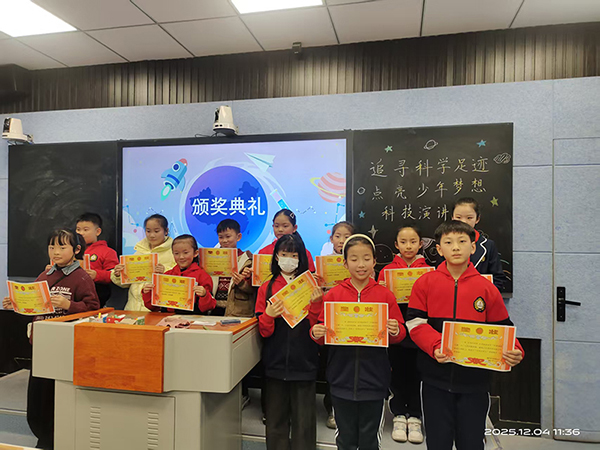 ![]() ![]() ![]() ![]() 比赛现场,小选手依次登台,以昂扬姿态演绎科技魅力。有的解读北斗导航系统的神奇功能,彰显中国科技的强大实力;有的将好奇心喻为探索科学的桥梁,呼吁同学们保持对世界的追问与热爱;有的分享趣味科学现象,让大家领略身边科学的奇妙;还有选手讲述时代楷模的科研故事,传递刻苦钻研、为国奉献的精神;三、四年级选手天真童趣的演讲,赢得现场阵阵掌声。 经过激烈角逐,评委老师们从演讲内容、语言表达、舞台表现等多个维度进行综合评分,最终评选出一、二、三等奖。在热烈的掌声中,副校长王银辉为获奖选手颁发奖状。 最后,王银辉为本次活动作总结。她对三、四年级全体师生的精心筹备和22名选手的精彩表现给予高度评价,强调科学探索是人类进步的动力,希望同学们以此次比赛为契机,保持好奇心、求知欲,生活中多观察、多思考、多实践,在心中种下科学的种子,努力成长为具备科学素养和创新能力的新时代少年,为祖国的科技发展贡献自己的力量。 此次科技演讲比赛的成功举办,不仅为三、四年级学生搭建了展示自我的平台,更在校园中营造了“爱科学、学科学、用科学”的良好氛围。相信在科学精神的引领下,受降路小学的同学们定能怀揣科学梦想,勇敢探索未知,在科技强国的道路上奋勇前行。 |