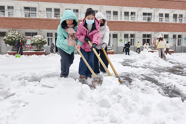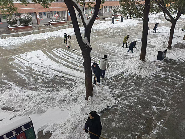 ![]() ![]() ![]() 行动是最暖的融雪剂。尽管户外寒风刺骨,志愿者们的脸颊和双手很快冻得通红,但大家的热情与干劲丝毫不减。现场一派热火朝天的劳动景象:有的志愿者挥舞铁锹,一锹锹铲起路面的厚雪与薄冰;有的手握扫帚,仔细清扫楼梯台阶、走廊通道的残雪;还有的两两搭档、默契配合,合力将成堆的积雪推送至绿化带旁,既清理了道路又为绿植储备了水源。志愿者们格外细心,专门在校门口的台阶、斜坡等易滑区域,手持除冰铲一点点清理冰层,反复检查每一处角落,生怕孩子们不慎滑倒。“叮叮咣咣”的铲雪除冰声、“簌簌”的清扫声与志愿者们的鼓劲声、笑声交织在一起,奏响了一曲团结协作、无私奉献的冬日赞歌。校园的每个角落,都定格下教职员工志愿者们顶风冒寒、弯腰劳作的忙碌身影,成为雪天里最动人的风景线。 经过数小时的连续奋战,教学楼前通道、校门口主干道、操场跑道、楼梯台阶等师生高频通行的重点区域,积雪被彻底清除、冰层被全面破除,一条条干净整洁的“暖心安全路”直通校园各处。 此次清雪除冰志愿行动,不仅以实际行动为全校师生筑起了一道坚实的安全温暖防线,更充分彰显了学校教职员工志愿者们“奉献、友爱、互助、进步”的志愿精神,展现了团结奋进、勇于担当的精神风貌和强大的团队凝聚力。 |