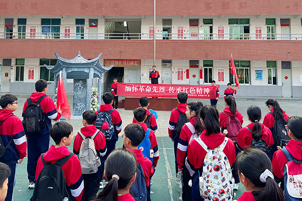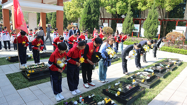 ![]() ![]() ![]() 出发前,校长叶彬政作讲话。他强调本次活动是一堂深刻的红色思政课,希望全体师生严守纪律、文明祭扫,在缅怀中传承精神,在实践中砥砺品格,以实际行动传承红色基因、争做时代新人。 活动现场,仪式流程严谨有序。全体师生肃立,向革命烈士默哀,共同寄托追思。优秀学生代表全体师生敬献花篮,校领导整理花篮缎带,以规范礼仪表达对先烈的崇敬之情。全体师生向革命烈士三鞠躬,并集体合诵红色诗词,彰显良好精神风貌。 党支部副书记袁晓丽回顾先烈革命历程,强调传承红色精神的重要意义,并就师生践行先烈精神提出明确要求。 学生代表张心怡结合先烈事迹作主题发言,阐述新时代青少年的责任与担当。 仪式结束后,师生们怀着无比崇敬的心情,依次来到烈士墓前,将一束束饱含深情的白菊、黄菊轻轻敬献在墓碑之上。大家俯身整理花束,深深鞠躬默哀,用最朴素的方式,向为了新中国诞生、为了人民幸福生活而英勇献身的革命先烈,表达最沉痛的哀悼与最崇高的敬意。孩子们稚嫩的脸庞写满庄重,老师们坚毅的目光饱含深情,每一束鲜花都是一次深情的告慰,每一次鞠躬都是一次精神的洗礼,让红色血脉在代代相传中永葆生机。 此次祭扫活动,是一堂极具实效的红色教育实践课,有效强化了师生的爱国主义情怀。学校负责人表示,将以此次活动为契机,传承红色血脉,立足自身岗位与学习实际,以实际行动为实现中华民族伟大复兴的中国梦贡献力量。 |