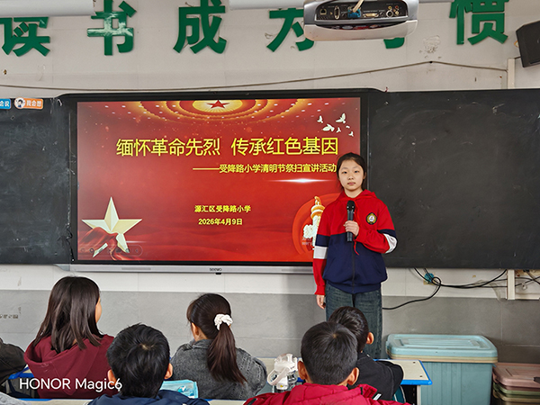 清明前夕,六年级全体师生前往漯河烈士陵园,举行庄重的祭扫仪式。在革命烈士纪念碑前,全体师生整齐列队、肃立默哀,向英勇献身的革命先烈敬献鲜花,表达深切哀思与崇高敬意。大家缓步瞻仰烈士墓碑,认真聆听革命先辈浴血奋战、保家卫国的英雄事迹,在庄严肃穆的氛围中重温峥嵘岁月,深刻感悟革命精神,接受了一次深刻的思想洗礼。 祭扫结束后,六年级的同学们化身“小小宣讲员”,认真梳理英烈事迹,精心准备宣讲内容,将祭扫时的感动与感悟融入每一段讲述之中,走进低年级班级开展红色故事宣讲。宣讲过程中,六年级学生精神饱满、情感真挚,用生动的语言讲述革命先烈不畏艰险、无私奉献的感人故事,带领大家一同追忆那段艰苦卓绝的光辉历程,感受信仰的力量。低年级的同学们认真聆听、用心思考,在一个个鲜活的红色故事中接受爱国主义教育,进一步增强了民族自豪感和历史责任感。 此次宣讲活动,不仅让红色基因深深根植于学生心中,也让同学们在学习与分享中坚定了理想信念,激发了勤奋学习、报效祖国的内生动力。今后,源汇区受降路小学将持续依托红色教育资源,开展形式多样、内容丰富的主题教育活动,引导全体学生铭记历史、崇尚英烈、砥砺品格,努力成长为有理想、敢担当、能吃苦、肯奋斗的新时代好少年。 |