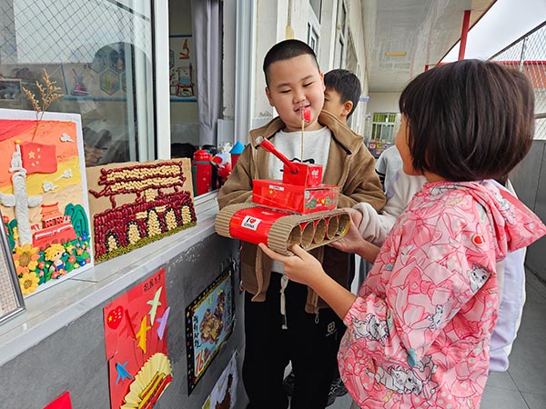 ![]() ![]() ![]() 此次作业展以学校前期发布的国庆创意实践方案为基础,围绕“艺术与创造”“声音与表达”“探索与发现”“智慧与传承”四大模块展开,各班结合学生作业布置展区,兼顾完整性与观赏性。“艺术与创造”展区,墙面、展板满是创意手工作品:红豆绿豆粘贴的中国地图轮廓清晰,黄叶拼接的“长城秋色”诗意十足,彩色纽扣组成的国旗与“76周年”图案鲜艳夺目,部分班级还设“创意解说员”,讲解“彩色纽扣代表56个民族”等设计理念。 “声音与表达”展区成为“情感加油站”,班会时间里,家庭合唱《我和我的祖国》、同伴演绎《少年中国说》的视频轮番播放,“红色故事角”中,学生分享“爷爷亲历电灯变迁”“奶奶家乡土路变柏油路”等真实故事,让家国发展具象化。“探索与发现”展区,“社区爱国寻宝图”拼成班级“大地图”,标注爱国标语、广场国旗等位置,还发起互动游戏;“家乡变迁报告”以图文对比呈现“露天菜市场变室内”“土操场变塑胶跑道”等变化,厚植乡土情怀。“智慧与传承”展区充满烟火气,“传统游戏分享区”记录长辈童年游戏,“美食实践展”展示包饺子、做家乡小吃的图文手册,传递亲子温暖与生活智慧。 本次活动不仅检验学生假期实践成果,更成为班级凝聚力与爱国教育的生动实践。学生从“完成作业”走向“分享收获”,他们纷纷表示“作品展出有成就感”“更觉祖国伟大”。未来,该校将继续以实践活动为载体,让爱国主义教育融入日常、扎根心灵,引导学生在实践中成长、在感悟中爱国。 |